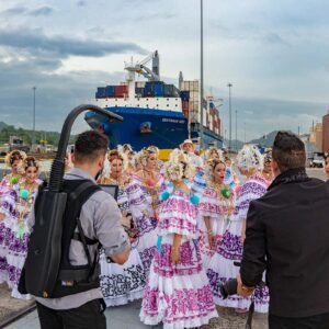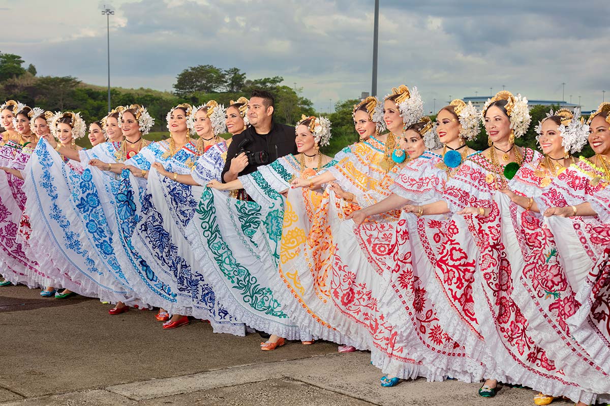 Recientemente, la agrupación Polleras de Mi Tierra llevó a cabo una sesión fotográfica con 30 polleras de gala en las esclusas de Miraflores.