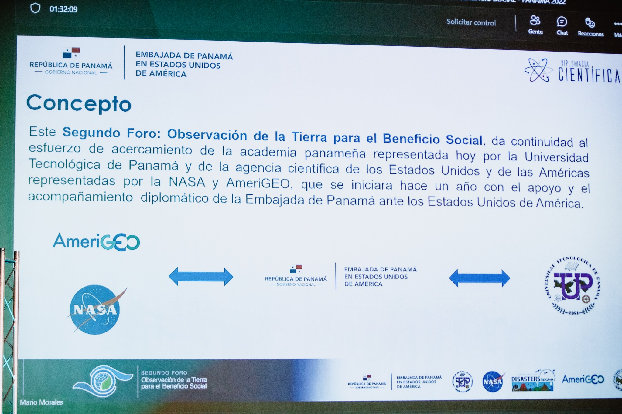 El administrador del Canal, Ricaurte Vásquez Morales, participó en el Segundo Foro de Observación de la Tierra para el Beneficio Social, organizado por la Universidad Tecnológica de Panamá, la Embajada de Panamá en los Estados Unidos de América, la División de las Américas del Grupo de Observación de la Tierra (AmeriGEO), la Administración Nacional de Aeronáutica y el Espacio (NASA) y su Programa NASA Disasters.