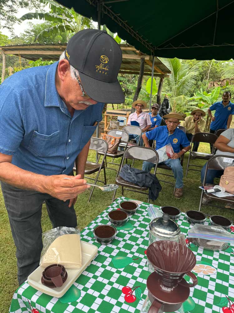 El ingeniero Carlos Fuentes, experto en el manejo poscosecha del café, complementó la capacitación con una demostración del uso de técnicas de granulometría (tamaño del grano) y cata (sabor) para evaluar la calidad del grano de café.