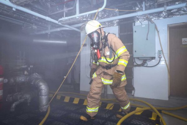 El ejercicio, que se realizó con la colaboración del Cuerpo de Bomberos de Panamá, tuvo lugar dentro de una embarcación con eslora (largo) total de 250 metros y manga (ancho) de 44 metros a la altura, ubicado en el atracadero Pacífico de la bahía de Panamá.