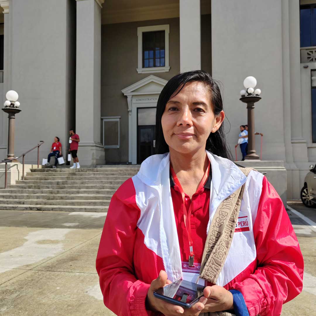 “Ver la bandera en las escalinatas me dio una sensación de majestuosidad. Se nota que costó mucho ponerla allí”, expresó Margot Puicaña, de la agrupación Identidad Perú.