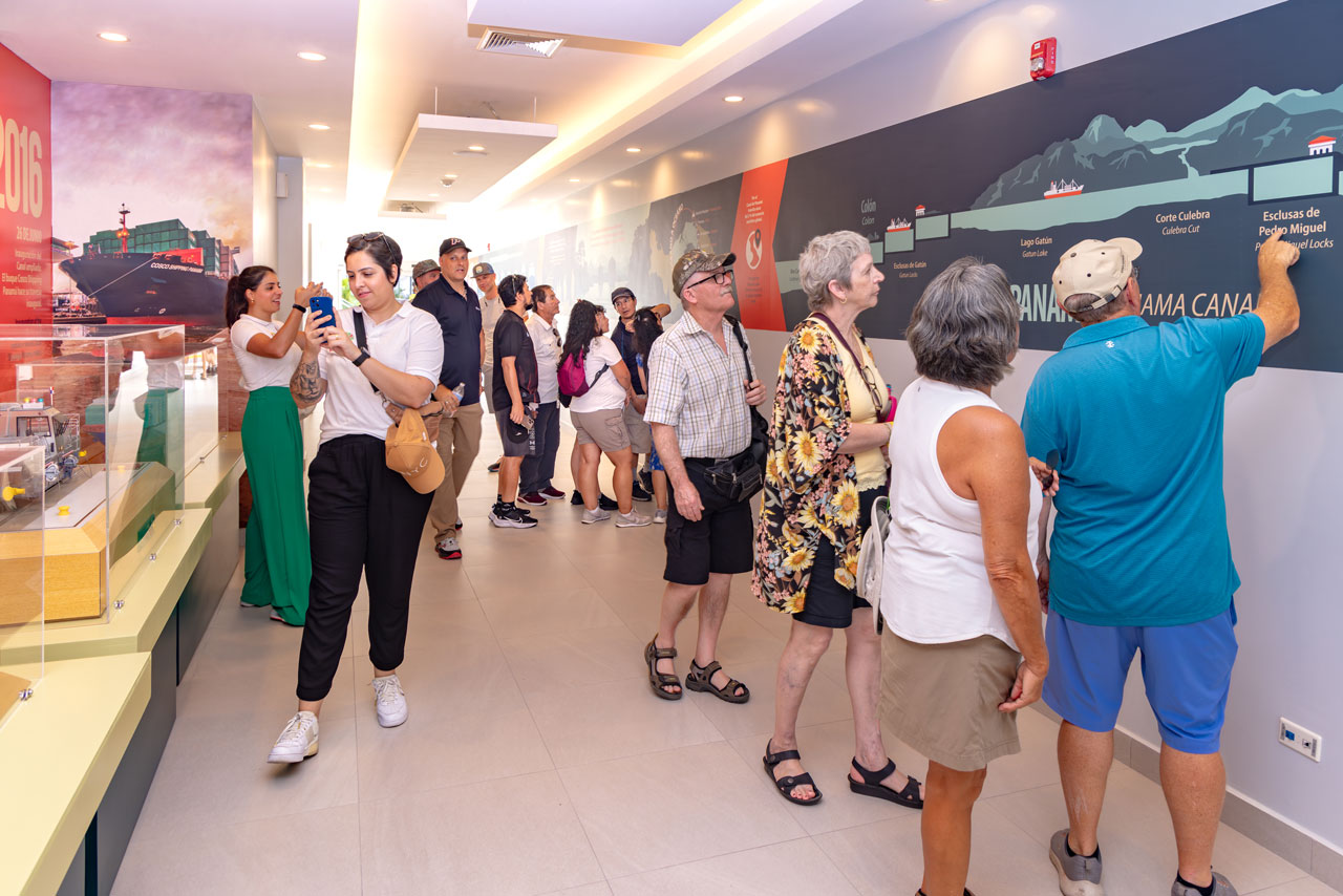 De los más de 8,500 trabajadores del Canal de Panamá, un equipo de 25 personas, hombres y mujeres profesionales y orgullosos, se dedica a atender a los visitantes, compartiendo recorridos guiados, narraciones en tiempo real y ofreciendo una atención de primer nivel en las instalaciones del Canal. Esto ha posicionado al Canal de Panamá como una de las mejores experiencias a lo largo de los años.
