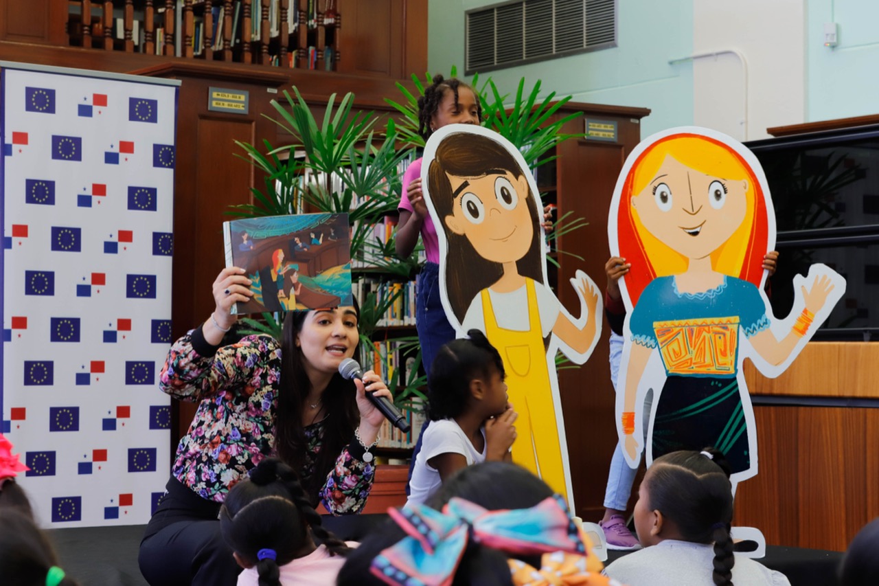 Este encuentro reunió a más de 50 niños que tienen en común la costa de la ciudad y la conciencia de conservarla. La Embajada de la Unión Europea en Panamá invitó a los niños de la Fundación “Mi voz para tus ojos” y miembros de la comunidad de Santa Ana y San Felipe a escuchar la narración del libro “Nega es Hogar” escrito por la fundadora y directora del Movimiento Mi Mar, Serena Vamvas.