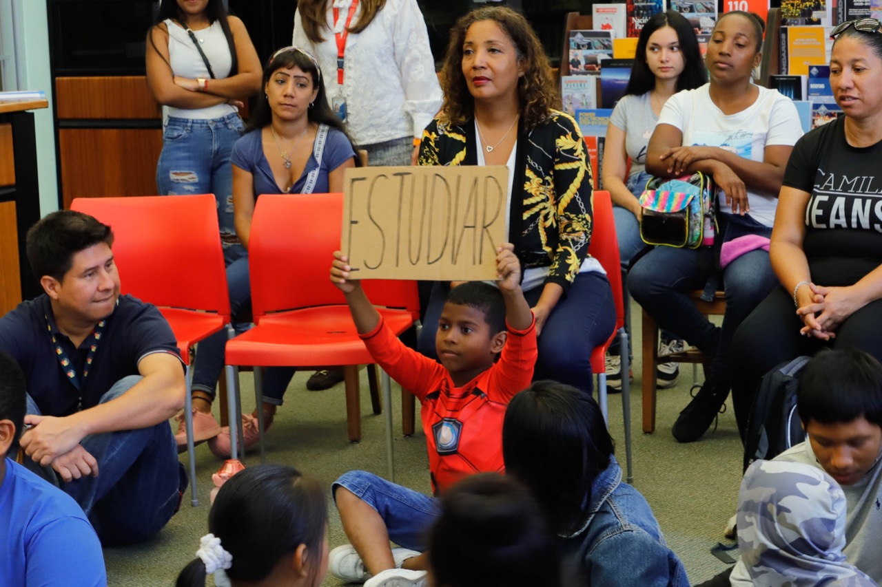 Los niños disfrutaron la narración de la autora Serena Vamvas, quien les involucró en el cuento “Nega es Hogar”. Escuchando atentamente la voz de la cuentacuentos, los niños levantaban cartones con las palabras claves del texto: estudiar, humo, arte, libro, tierra.