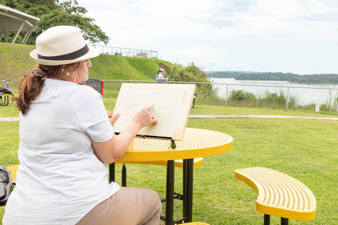 Contemplando en silencio las esclusas de Agua Clara se encuentra el artista Zhen Wei, profesor decano asociado de la Universidad Normal de Beijing, en esta su primera vez en Panamá. “Veo al Canal de Panamá como un símbolo de la unidad entre los pueblos”, menciona mientras recrea en acuarela el tranquilo entorno de los edificios de las esclusas en espera de que lleguen los barcos, y añade que “conexión es la palabra clave. Conexión y estar juntos. Nunca debemos olvidar que este es un proyecto económico, pero también artístico, y aquí hoy nos estamos apreciando unos a otros”.