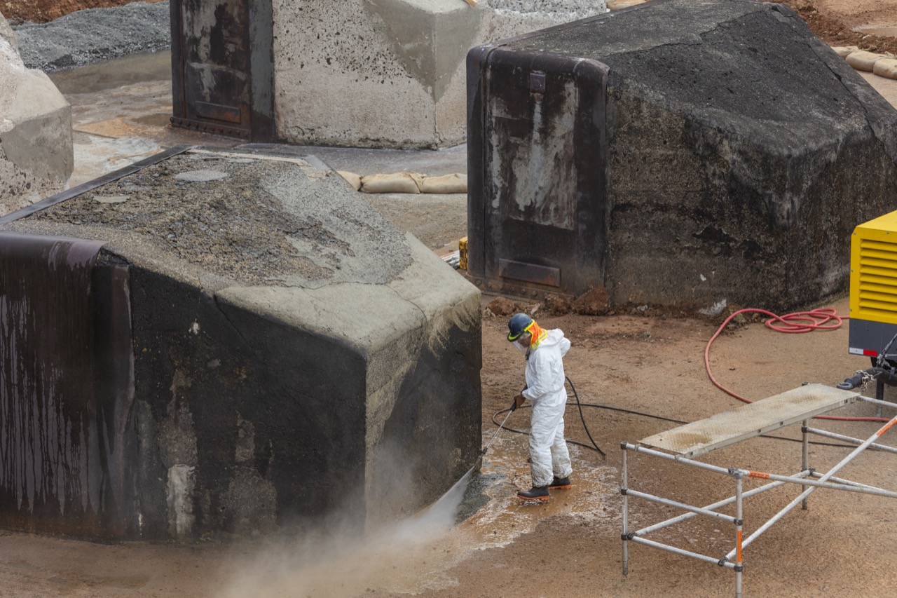 Este mes se dio el arreglo de tres bloques disipadores, los cuales presentaban partes deterioradas en su estructura de concreto. Los trabajos consistieron en demoler el concreto dañado y reparar el mismo, colocando acero de refuerzo, aplicar un puente de adherencia entre el concreto viejo y el nuevo, y restablecer las partes deterioradas con mezcla de concreto de 5,000psi devolviéndolos a su forma original.