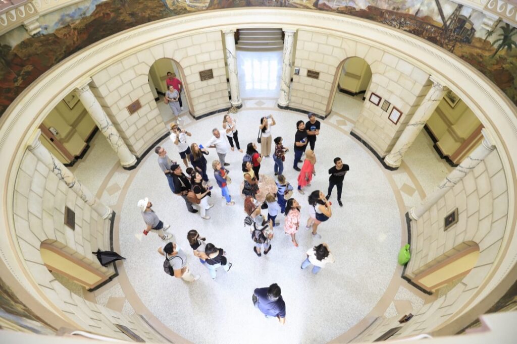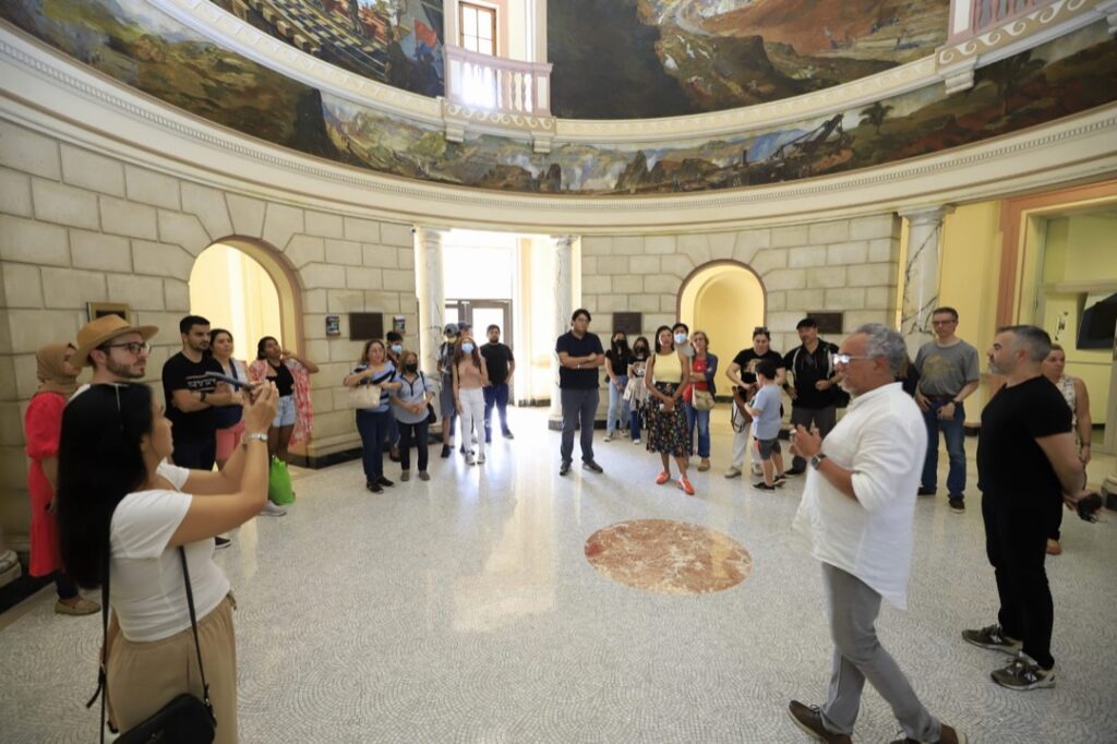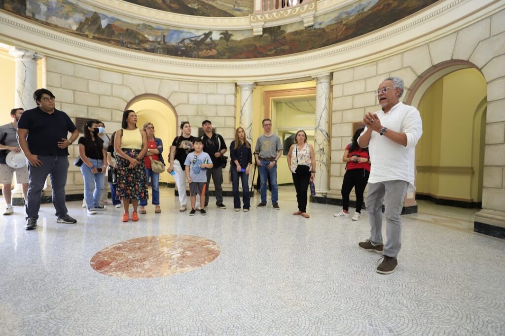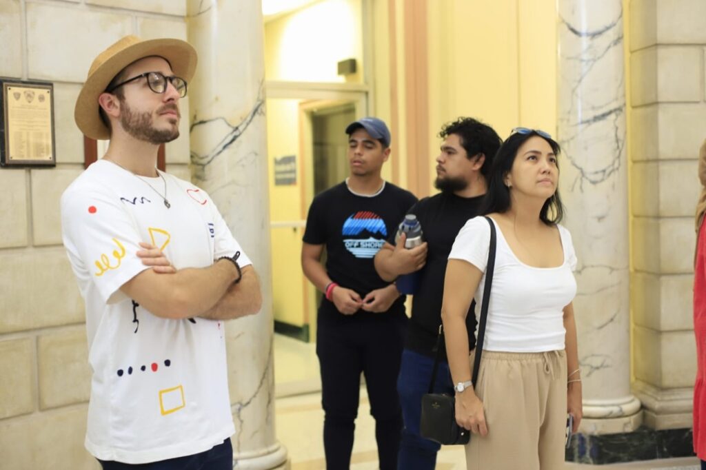 “Estoy fascinado con la belleza artística e histórica que encierra el Canal de Panamá”, expresó Daniel González, creador de la cuenta de instagram @modernpty, quien estuvo a cargo de un recorrido en la rotonda del Edificio de la Administración del Canal. La gira incluyó, además, el monumento a los Mártires del 9 de Enero y el Centro de Capacitación Ascanio Arosemena, donde se encuentran en exhibición materiales de la construcción del ferrocarril transístmico y del Canal.