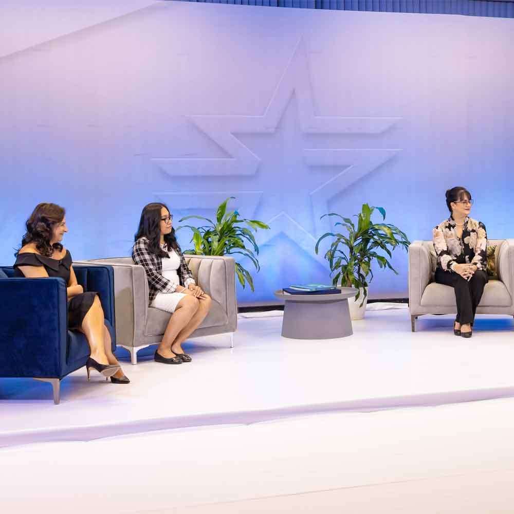 Jeannette Díaz-Granados, directora de empresas multinacionales; Jerusalén Smith, primera mujer guna en graduarse con honores en la Facultad de Medicina de la Universidad de Panamá, e Ilya Espino de Marotta, subadministradora del Canal, respondieron a preguntas de la anfitriona Derissa Simmons.