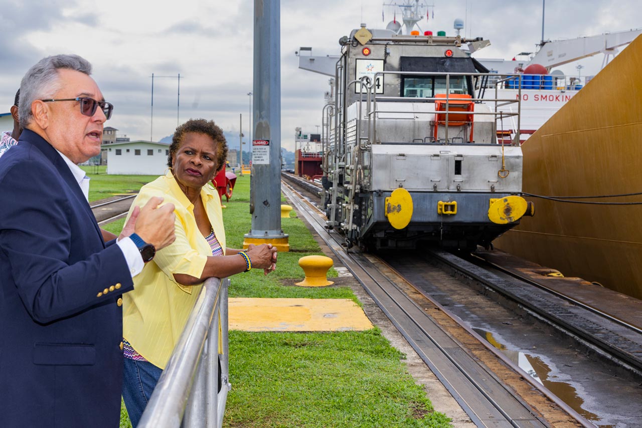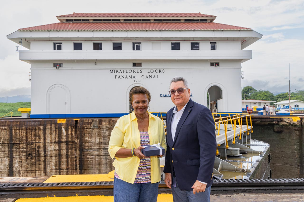 La presidenta de Barbados, Sandra Mason, visitó el Canal de Panama en ocasión de su participación en la toma de posesión del presidente José Raúl Mulino el 1 de julio de 2024.