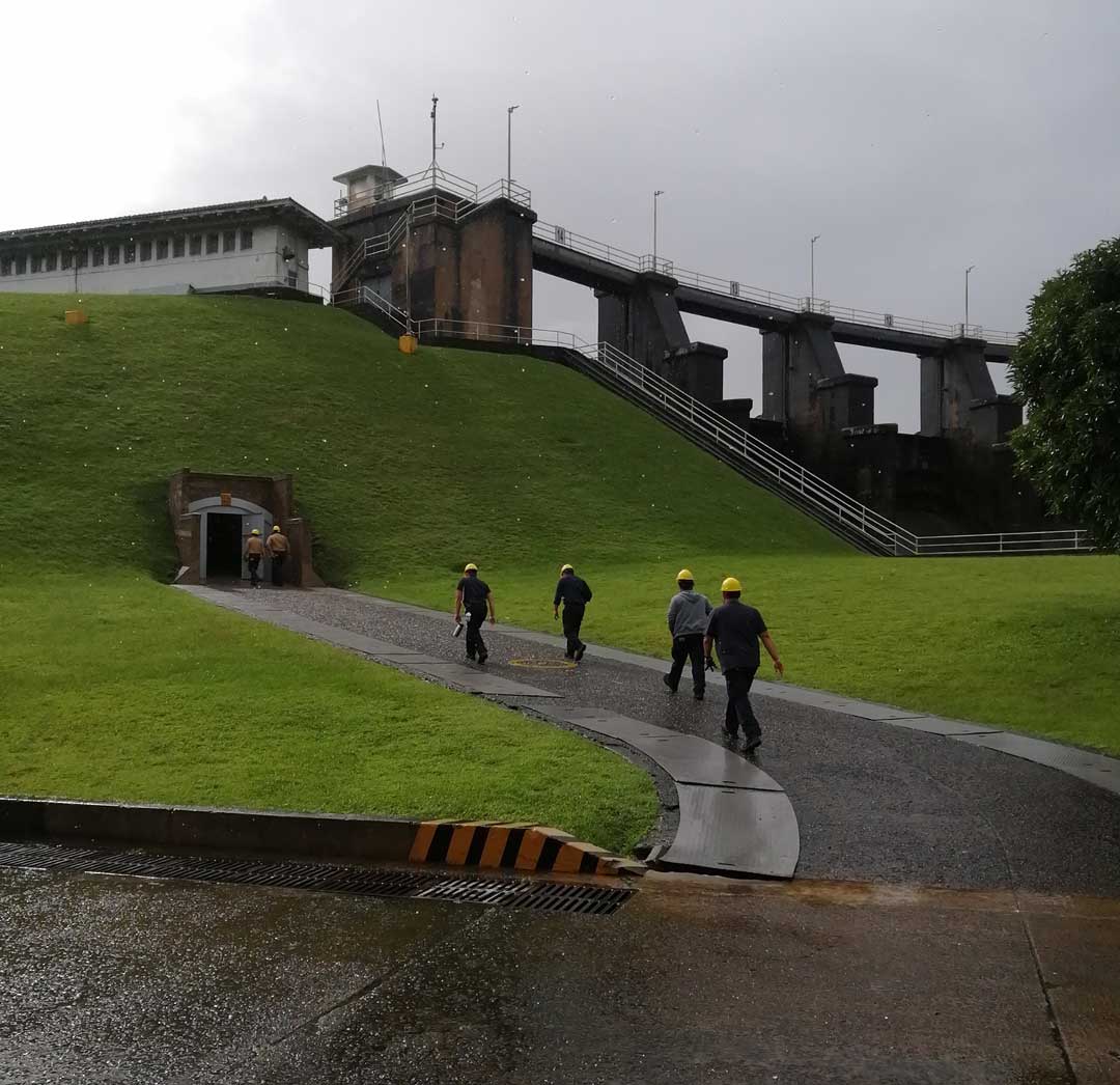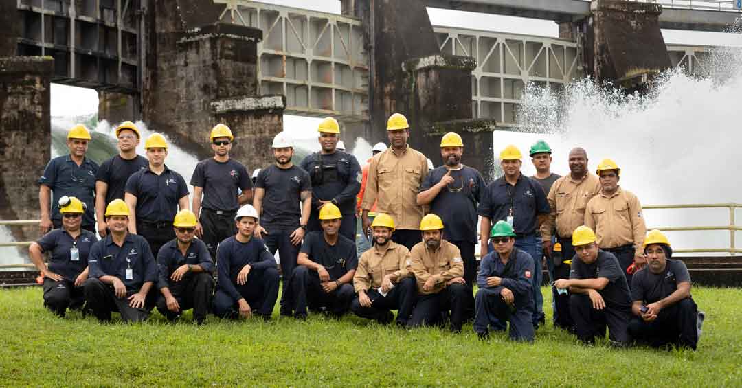 Fuerza laboral del Canal encargada de la prueba de compuertas del vertedero de Gatún