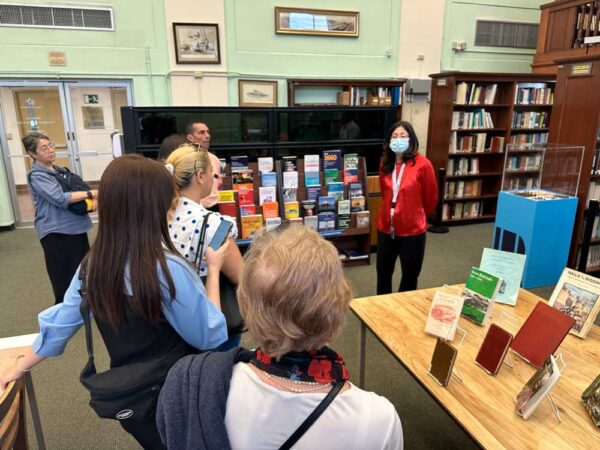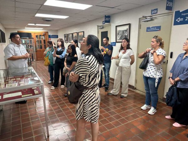 Posteriormente, Yelka Ávila, técnico en Bibliotecología, guió a los visitantes a través de la historia de las distintas sedes de la biblioteca del Canal, hasta su ubicación actual en el Centro de Capacitación Ascanio Arosemena. Allí, los asistentes conocieron el funcionamiento del sistema de búsqueda Alexandría, que brinda acceso a más de 54,000 títulos disponibles para investigadores, estudiantes y público general.