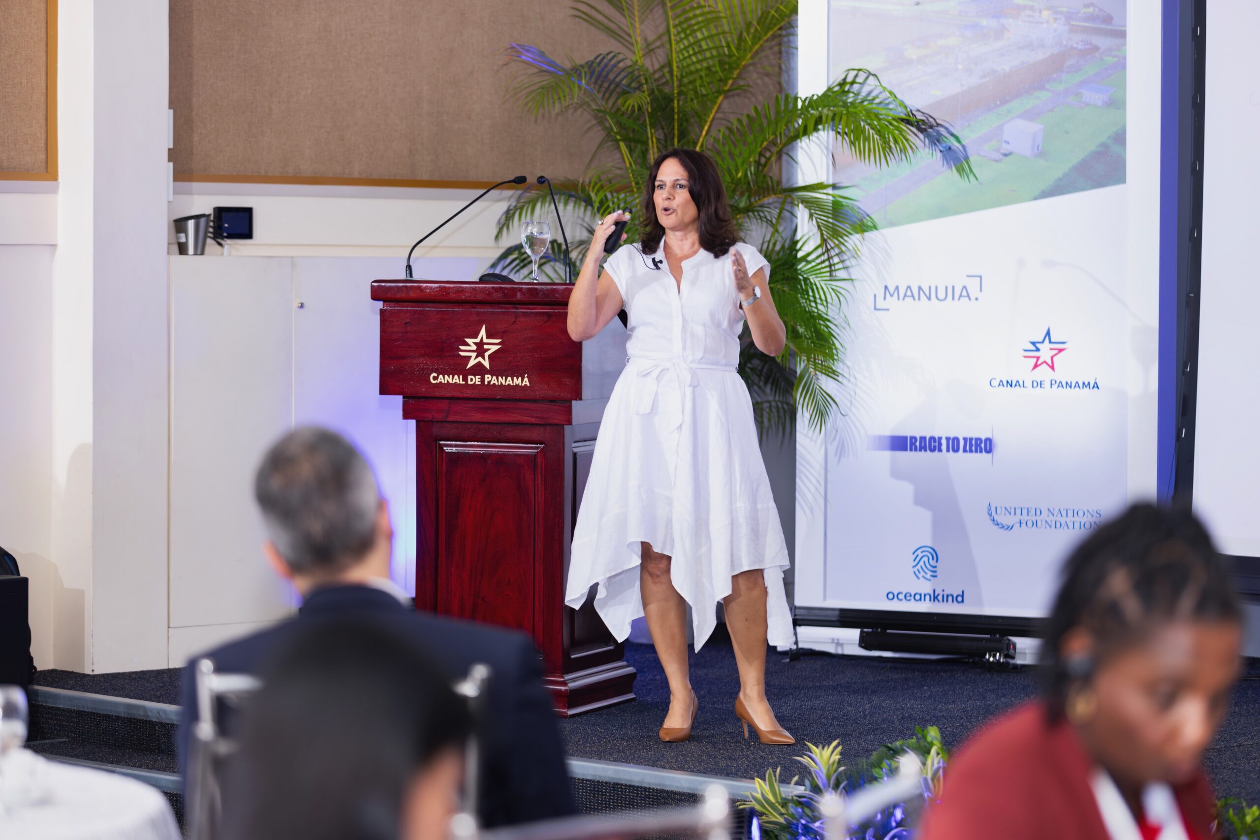 Espino de Marotta describió las diferentes iniciativas del Canal desde la gestión socioambiental de su cuenca hidrográfica hasta las innovaciones para descarbonizar las operaciones.