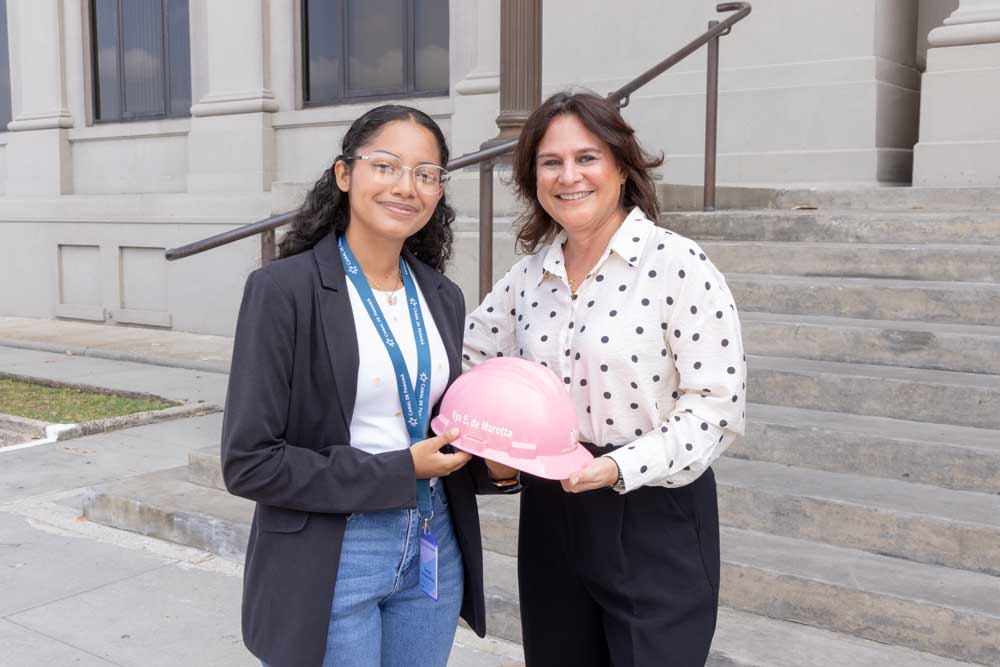 El pasado viernes 28 de marzo, 26 jóvenes del Programa de Ayudante Estudiantil del Canal de Panamá tuvieron la oportunidad de reunirse con la subadministradora Ilya Espino de Marotta en el histórico edificio de la administración del Canal en Balboa. Este encuentro fue inspirado por el testimonio de Christine Mece, una de las ayudantes estudiantiles, quien compartió cómo Marotta influyó en su decisión de estudiar ingeniería. “Verla con su casco y chaleco rosado, dirigiendo un proyecto tan grande, me inspiró a seguir mis sueños”, dijo Mece, recordando la primera vez que vio a Marotta en televisión liderando la ampliación del Canal.